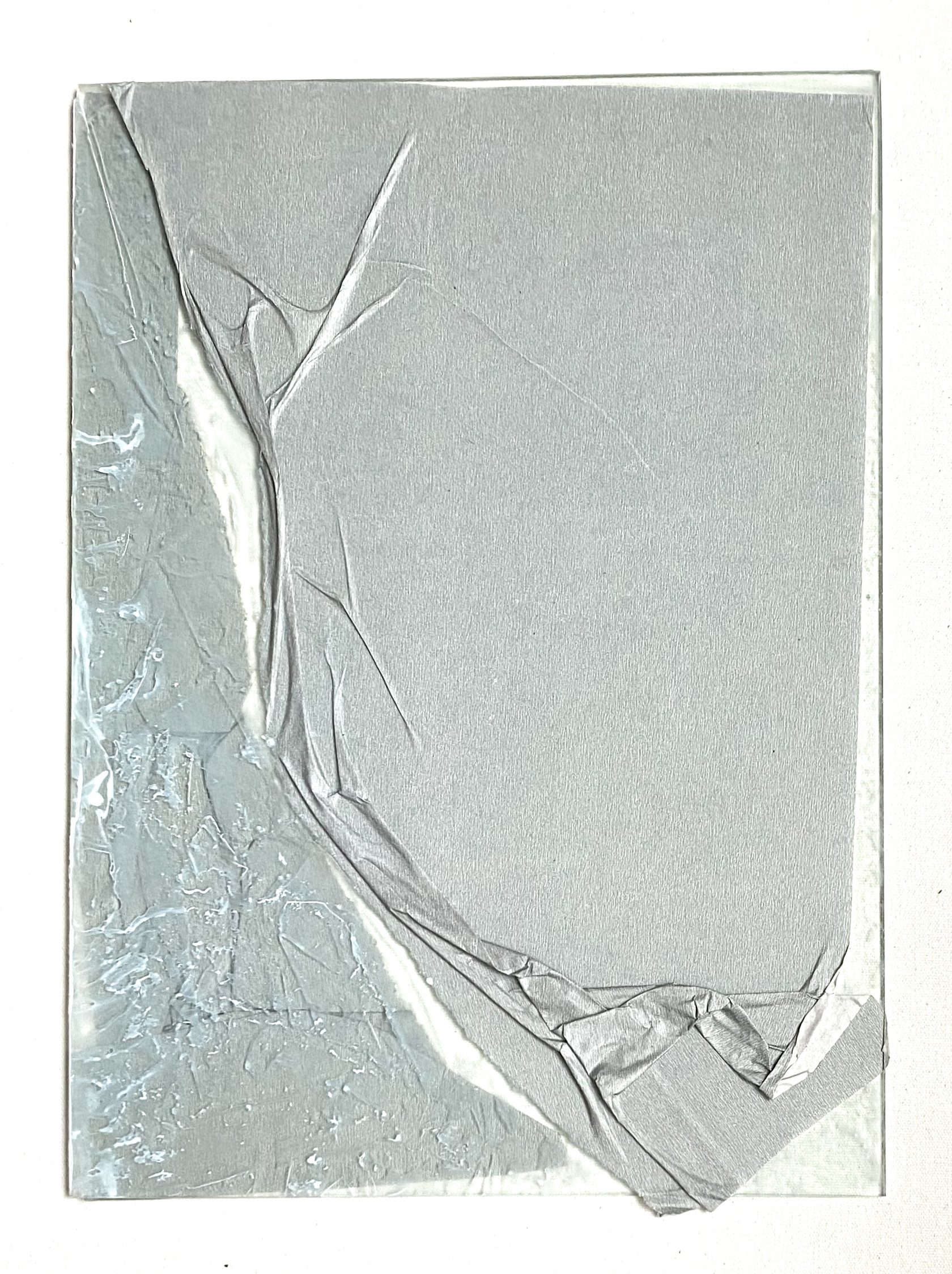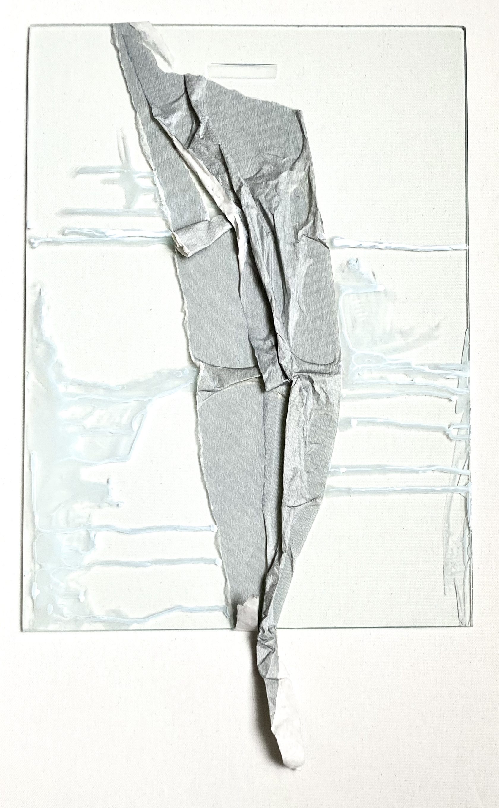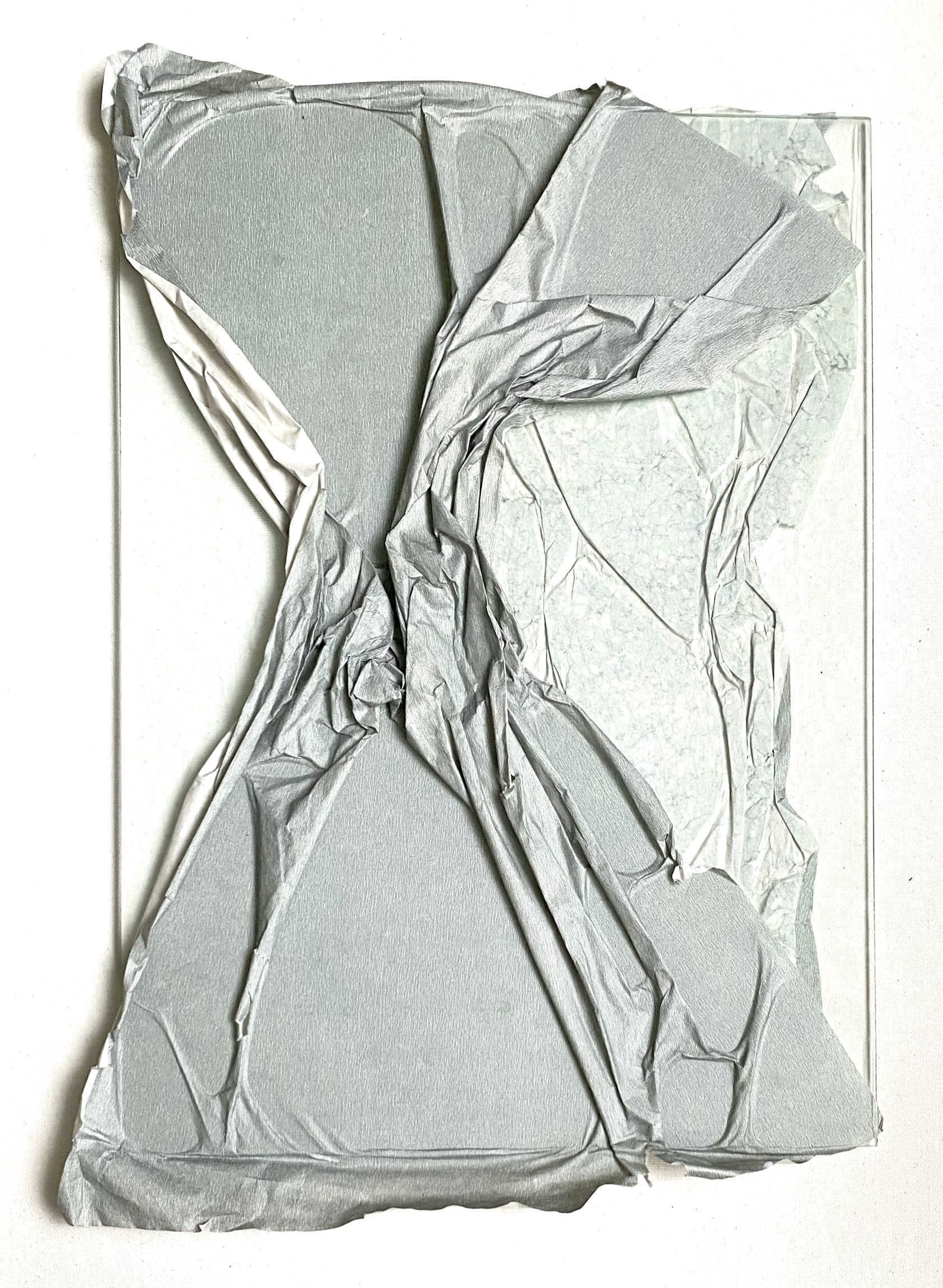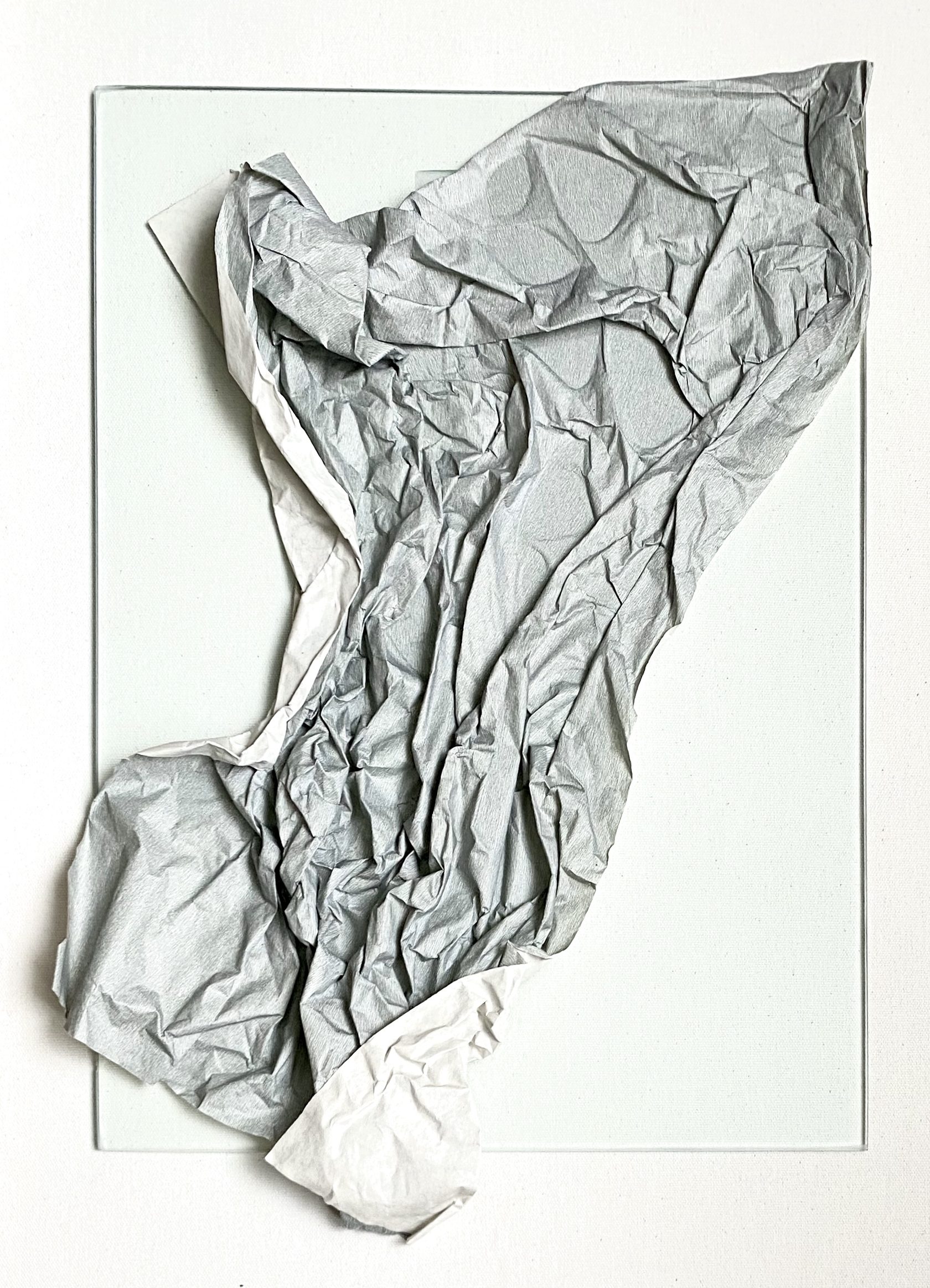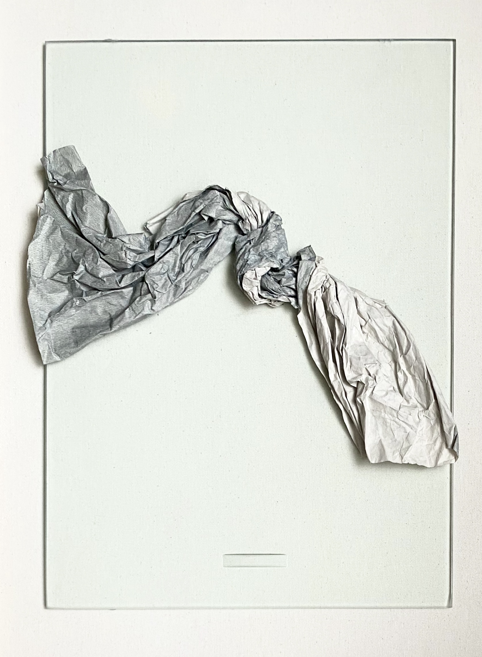 SPATIAL COMPOSITIONS OF GLASS AND PAPER TREATED WITH SPECIAL MIXED GLUE TO KEEP ITS FORM. MUST BE EXHIBITED ON THE TRANSPARENT HOLDERS AT A DISTANCE FROM A WHITE WALL WHERE THEY WILL THROW TRANSLUCENT FLOWING OVERTONES SYMBOLISING OBJECTIVE ESSENTIAL (ART OBJECT) AND SUBJECTIVE PERCEPTION (REFLEX).